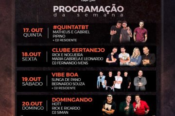 De quinta a domingo, casa receberá shows de Matheus & Gabriel, Pipino, Rick & Nogueira, Maria Gabriela e Leonardo, DJ Fernando Ivens, Sunga de Pano, Bernardo Souza, Hott, Rick & Ricardo e DJ Siman ... Leia mais...